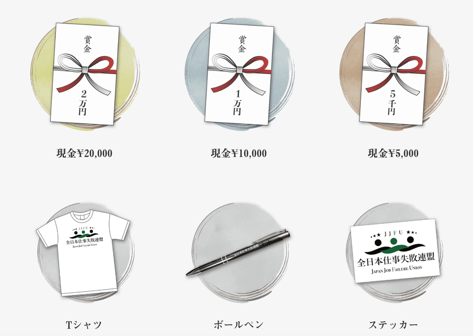 またピックアップされた失敗談には下記の豪華商品が贈呈されますのでたくさん失敗談を送って気持ちを楽にして賞金をゲットしちゃおう。