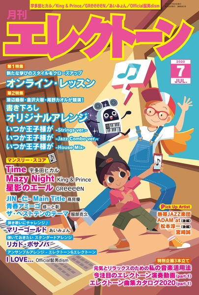 月刊エレクトーン2020年7月号は、【~新たな学びのスタイルをクローズアップ~オンライン・レッスン】と【~渡辺睦樹・倉沢大樹・尾野カオルが競演!~書き下ろしオリジアレンジ】の2大特集です。