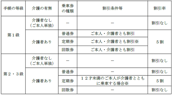 ・割引を行った乗車券で乗車されるときは、精神障害者保健福祉手帳を