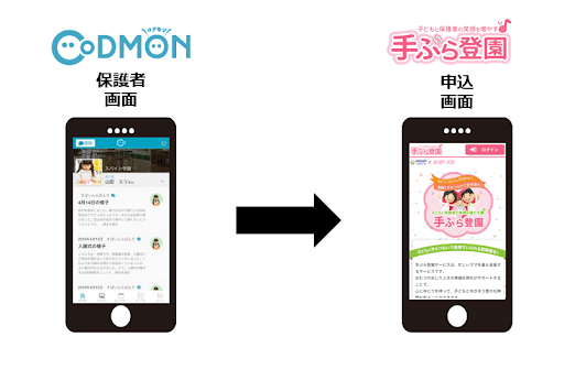 また、保護者用のコドモンアプリに、手ぶら登園サービスのリンクを張ることで、保護者は簡単に手ぶら登園サービスに申込をすることができるようになります。