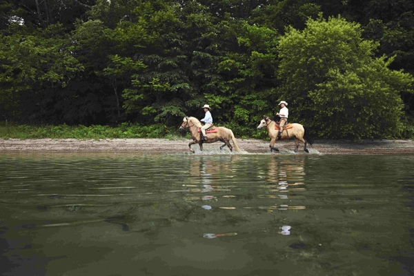 青森の夏は、平均気温が約20℃で、自然を楽しむにはベストシーズンです。深緑が美しいこの季節に、自然の中で心からリラックスできるよう、合宿の集大成には、奥入瀬渓流の源である十和田湖で水上乗馬を実施します。この体験は、通常体験できない、当プラン限定のプログラムです。真夏でも避暑地のように涼しい風が感じられる十和田湖畔で、馬とともに国立公園の自然を満喫できます。