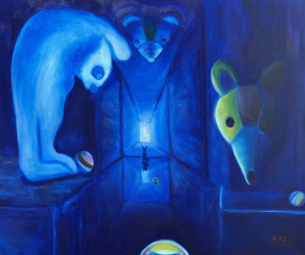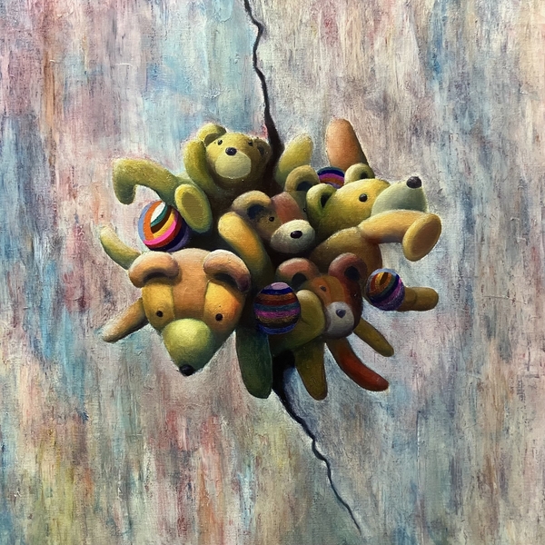 2023年1月にアート活動を開始した時の最初の作品が、くまのぬいぐるみをモチーフとした作品「反省するくまさん」です。以降同モチーフの作品を複数制作し、それらを「くまさんシリーズ」と称し、今回の個展のテーマとしました。私の芸術的思想の根源を遡ると、幼少期〜思春期の悲しい体験に紐づいています。当時は辛く悲しい体験そのものでしたが、一方でその体験がなければ私の中の創作意欲は発生していなかったに違いありません。未来へ向けた私のあらゆる活動エネルギーの根源は負の感情や過去の体験に在ります。本個展では、「くまさんシリーズ」を制作するに至った過程、背景にある心理学的・医学的思想についての解説も展示しております。会場はYOHAKU、WABIの二箇所ございますので、ぜひどちらにもお立ち寄りください。