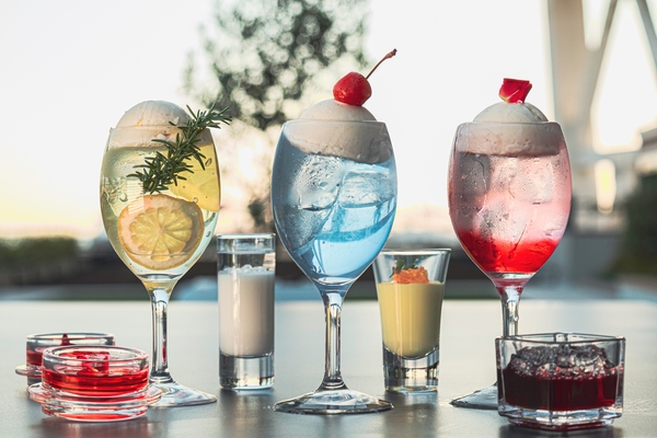 シャーリー・テンプルやサラトガ・クーラーなどのノンアルコールカクテルやソフトドリンクの他、フードカウンターにはリーベルホテルオリジナルのクリームソーダもご用意。クリームソーダは3種類のベースとアイスをお好みでお選びいただけます。アルコールメニューはビアテラスにはかかせない生ビールの他、ウイスキーや焼酎、ワイン、6種類のカクテルベースがございます。