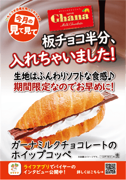 【首都圏ライフ】「小麦の郷」&「ロッテ」夢のコラボが実現!板チョコ半分入れちゃいました♡「ガーナミルクチョコレートのホイップコッペ」新発売
