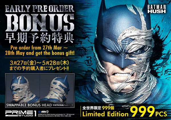 スタチューメーカー株式会社プライム1スタジオ(東京都中央区新川1丁目18-11/代表取締役:松本理恵)は『バットマン:ハッシュ』より「ミュージアムマスターライン バットマン:ハッシュ バットマン“バットケイブ”Ver」が「通常版」「DX版(早期予約特典あり)」の2種類で予約受付を開始しました。商品の発売は2021年6月~2021年9月を予定しています。
