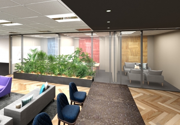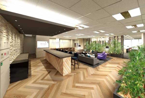 オフィスの計画にあたり、掲げたデザインコンセプトは「Openness」「Feel nature」「Lounge」。オフィスへの来客にリラックスして過ごしてもらうことと同時に、従業員同士のコミュニケーションを向上させる空間となるようデザインしました。