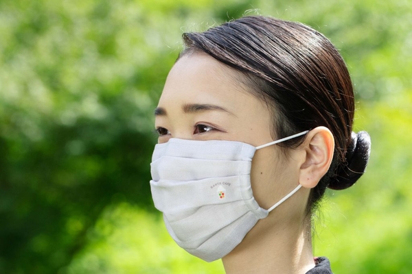 長時間、心地良く着用できるよう、裏地には、手触りが柔らかく、肌あたりが良いオーガニックコットンを採用しました。耳ゴムには、耳が痛くなりにくい柔らかいゴムを使用しています。また、長さを調節できるので、自身のサイズに合わせ、ぴったりと着用でき、結び目の位置を動かせば、耳にあたって痛くなるということもありません。
