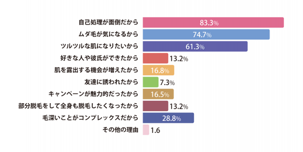 ◆全身脱毛の始めたきっかけは約8割が「自己処理が面倒だから」