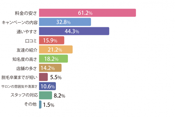 ◆脱毛サロンを選んだ決め手「料金の安さ」が61%