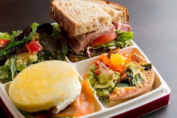 ハルニレテラスの6つのレストランやカフェでは、テイクアウトにも力を入れています。例えばレストラン&デリ・ワインの「セルクル」で、ローストビーフや鹿のテリーヌを使ったサンドウィッチを自然派ワインとあわせてテイクアウトすれば、ちょっと贅沢なピクニックランチが楽しめます。