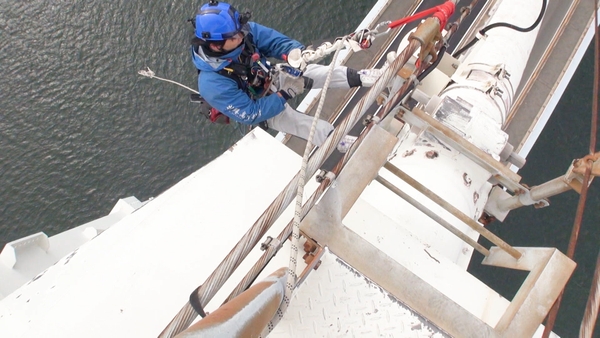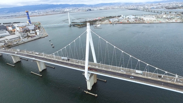 次は、大阪の市街地と臨海地区をつなぐ巨大な橋を点検する特殊高所技術者・海江田さん。