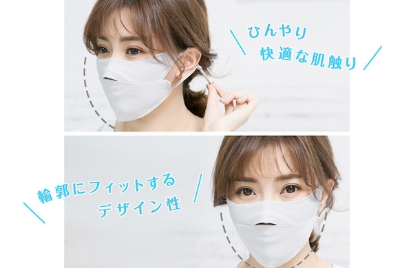 マスクwith2は接触冷感を持つポリエステル素材によるもので、肌から物体に熱が移動しやすい素材を利用しています。