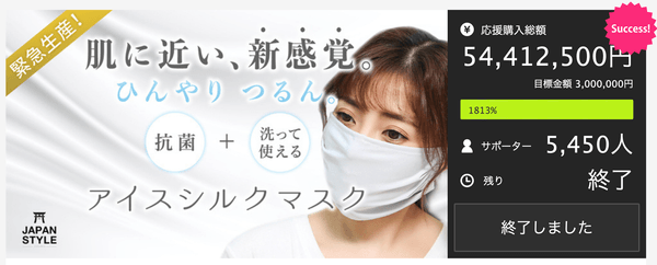 クラウドファンディングで5400万円を達成した抗菌マスクの第二弾!夏にひんやり快適な「洗えるマスク」の支援募集開始!