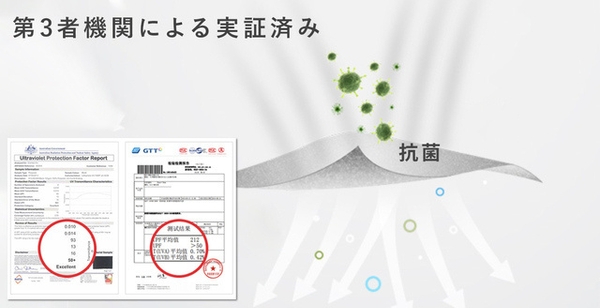 「マスクwith2」は、抗菌作用を持っており、第三者機関の検査で一定の抗菌効果があることを証明済みです。