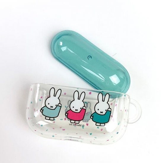 透明のケースにグリーンのフタ付きのイヤホンケースです。ミッフィーが並んだデザインもキュートですよね。