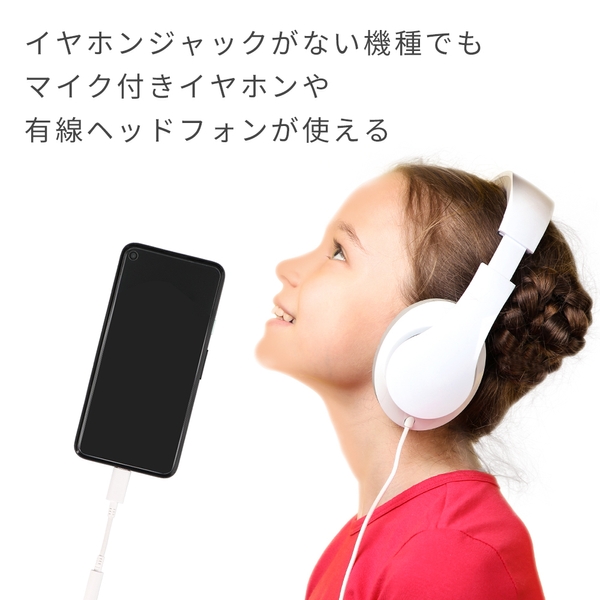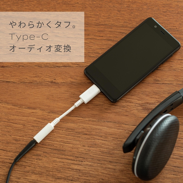 ・3.5mmステレオミニプラグ端子をUSB Type-Cポートに変換できるケーブルです。今まで使っていたイヤホンやヘッドフォンを、USB Type-Cポートコネクタに変換してスマートフォンに接続することができます。