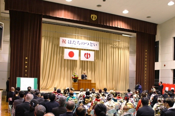 1月12日(日)に農村環境改善センターで行われた「令和7年中井町はたちのつどい」は「はたち」を迎える男女78人が期待と希望を胸に新たな門出を祝いました。会場では色鮮やかな振り袖やスーツ姿で友人との再会を喜ぶ姿や昔話に花を咲かせていました。