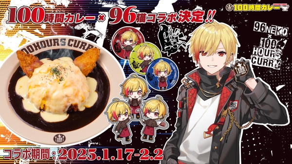 全国約50店舗展開のカレー専門店「100時間カレー」を運営する株式会社アークス(本社:東京都豊島区、代表取締役:米田周平)は、2025年1月17日(金)から『96猫』とのコラボキャンペーンを全国の100時間カレー店舗および通販サイトで実施することをお知らせします。