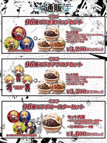 ①『96猫コラボ』レトルトカレー&缶バッジ付セット 3,456円(税込)