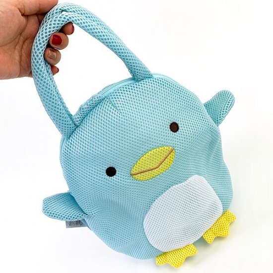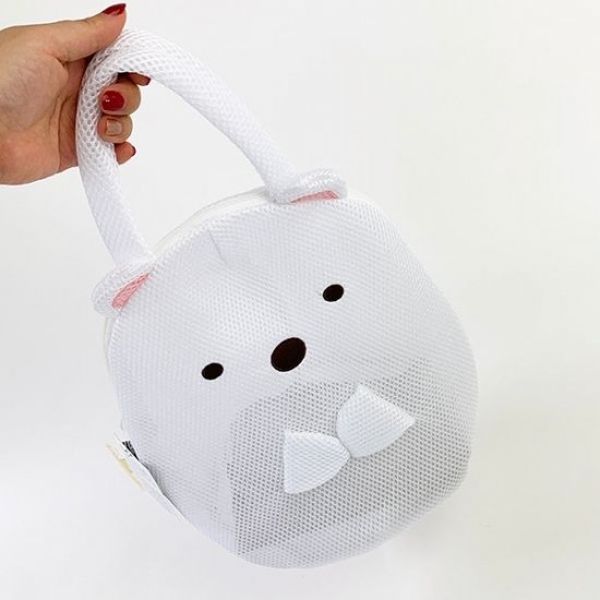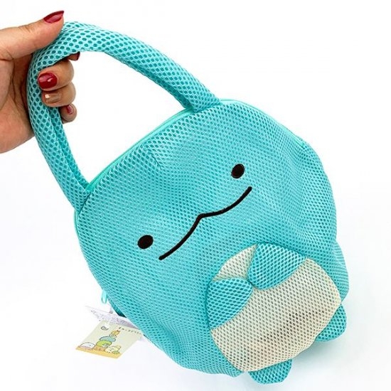 すみっコぐらしのキャラクターの形をした、メッシュ素材のトートバッグです。