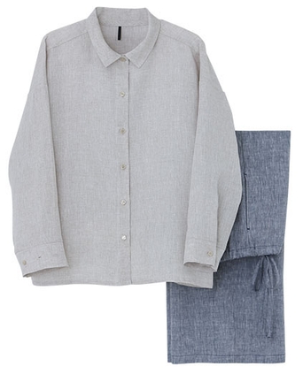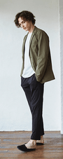 フレンチリネン素材とドロップショルダーの シルエットが快適さとこなれ感を演出します。