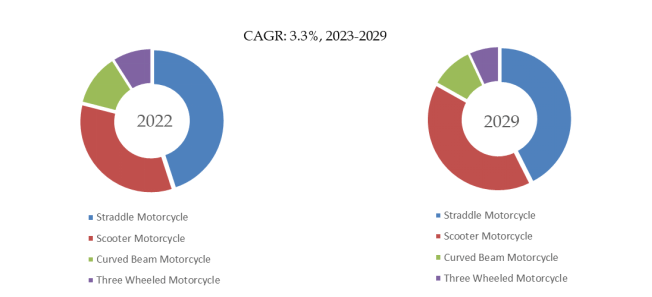 製品の用途別では、ストラドル・モーターサイクルが最大の用途であり、47%のシェアを占めている