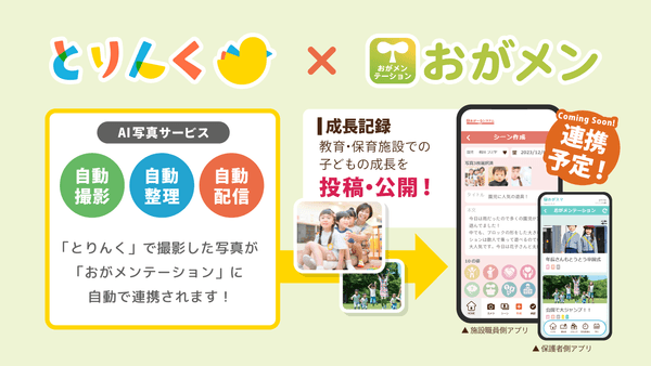 自動写真サービス「とりんく」は、保育者の手間を減らしながら、園での子供たちの日々の何気ない表情・行動を、素敵な写真にして、保護者に届けることができるサービスです。