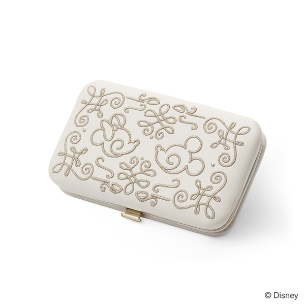 このほどの新作は、ケイウノオリジナルデザインによる手のひらに収まるミニサイズのトラベルジュエリーケースとして、やわらかなフェイクレザー生地に、「ミッキー&ミニー」がベージュカラーでさりげなく刺繍されています。