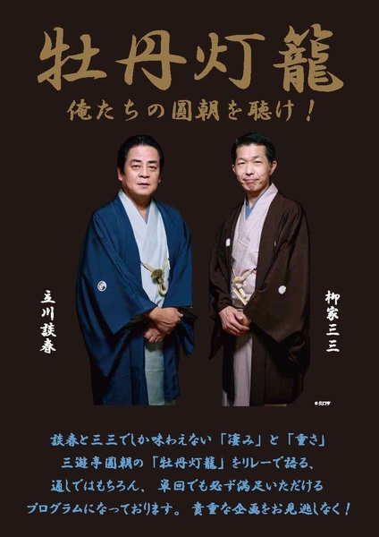 株式会社TBSグロウディア(東京都港区、代表取締役:園田憲)は、落語家・立川談春と柳家三三で、三遊亭圓朝の「牡丹灯籠」をリレーで語る、『牡丹灯籠』-俺たちの圓朝を聴け!-公演を有楽町朝日ホールにて開催します。この二人の組み合わせでしか味わえない「凄み」と「重さ」、3公演セットではもちろん、1公演観るだけでも必ず満足いただけるプログラムになっております。チケットは好評発売中、貴重な企画をお見逃しなく!
