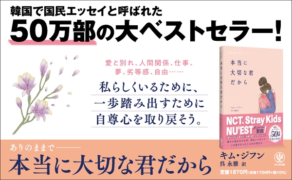株式会社かんき出版(本社:千代田区 代表取締役社長:齊藤龍男)は、『本当に大切な君だから』(キム・ジフン/著 呉 永雅/訳)https://kanki-pub.co.jp/pub/book/details/9784761275884を2022年1月7日より全国の書店・オンライン書店等(一部除く)で発売いたします。