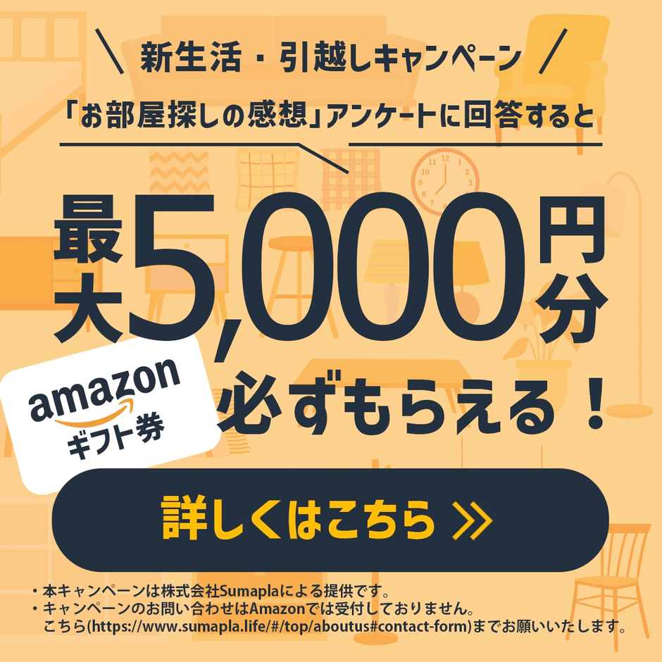 お部屋探し感想アンケートに回答すると、もれなくAmazonギフト券(最大5,000円)”がもらえる。
