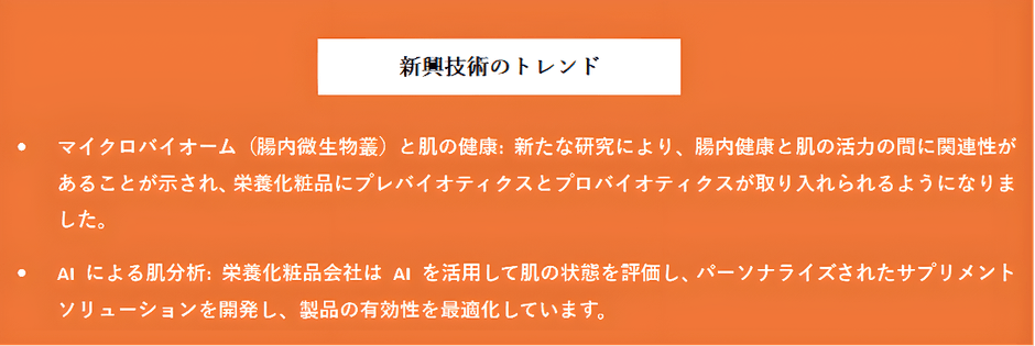 栄養化粧品を形作る企業、テクノロジー、イノベーション