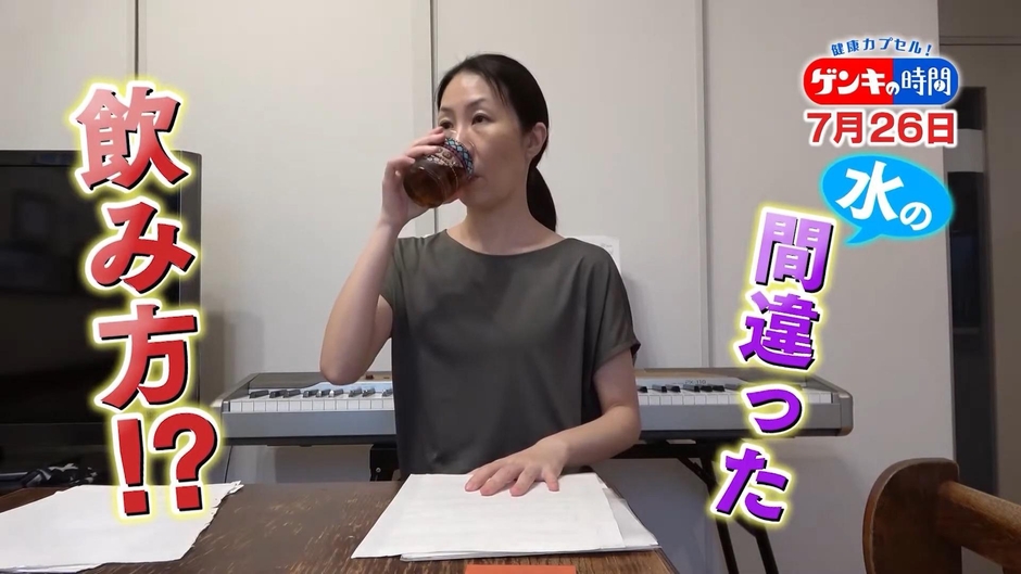 熱中症、夜のトイレ…あなたは大丈夫?「正しい水の飲み方」をご紹介!さらに夏の水分補給におすすめの食材も!7月26日(日)あさ7:00放送『健康カプセル!ゲンキの時間』