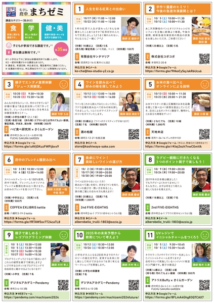 まちづくり府中(所在地:東京都府中市、代表取締役社長:槇ヶ垰俊一)は、2024年10月1日(火)から31日(木)まで、府中のお店の人が講師となり、専門知識やお得な情報、コツを無料で教えてくれる「むさし府中まちゼミ」を開催、今年で7回目となります。
