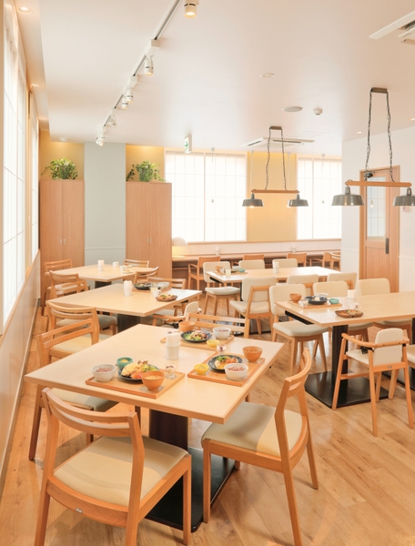大戸屋がプロデュースする、明るい店内と、彩りとバランスのよい小鉢や味噌汁などのメニューにこだわる〈かこみ食卓〉。