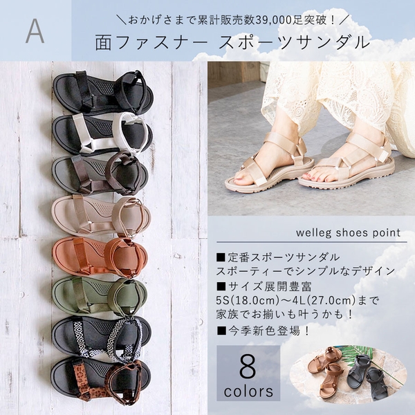 「シンプル面ファスナースポーツサンダル」