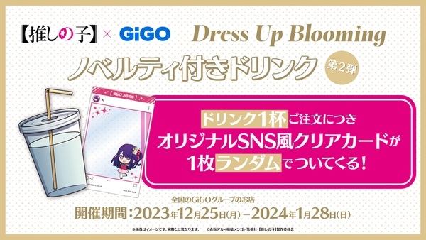 株式会社GENDA GiGO Entertainment(本社:東京都港区 代表取締役社長:二宮 一浩 以下当社)は GiGOグループのお店におきまして、TVアニメ『【推しの子】』とのコラボキャンペーン第2弾を2023年12月25日(月)より開催いたします。