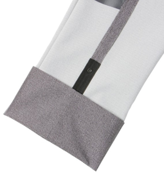 今回発売する「クイックタッチパンツ」には、裾の裏側にスナップボタンを取り付けており、裾先を内側へ折り返してボタンを留めることで誰でも簡単に裾上げをすることができます。裾の裏側のスナップボタンは縦に3㎝間隔で3つ取り付けており、パンツの丈(股下の長さ)は78㎝、75㎝、72㎝の3段階に調整できるようにしました。