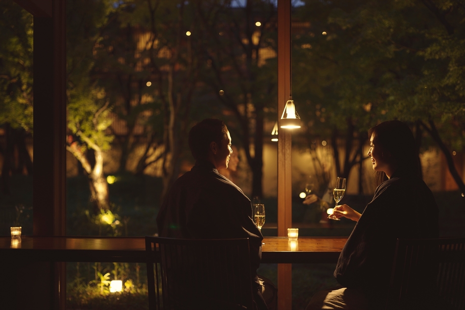 湯上がり後の寛ぎ時間をBARタイムとして演出します。デコポンとシャンパンを使ったカクテル「デコポンミモザ」や鮮やかな色合いが特徴的な「季節の甘酒カクテル」など、各施設こだわりのお酒を本プランの為に用意しました。お酒の提供場所もオーシャンビューのデッキや、プライベート感溢れる客室のテラスなど、ロマンティックな場所を提案します。