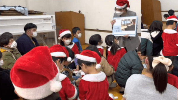 クリスマスプレゼントを直接こども達へ届けると共に、山王こどもセンターのクリスマス会に参加させていただき、こども達とクイズや出し物を楽しみました。