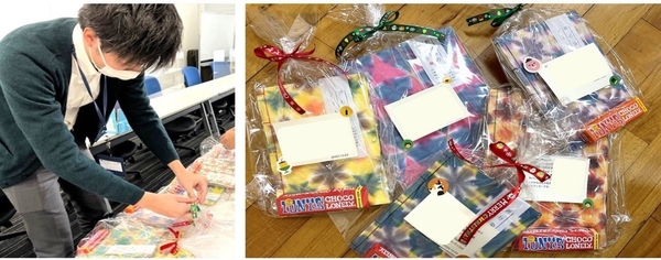当社の大阪本社社員に限らず、全社員へ山王こどもセンターの活動を周知するとともに、任意での寄付を募り、集まった寄付金で山王こどもセンターのこども達にノートとチョコレートのプレゼントを贈りました。プレゼントは、生活介護事業所・障がい者福祉施設などで作られた商品やフェアトレード商品を選定いたしました。