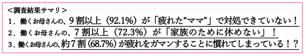 1. 働くお母さんの、9割以上(92.1%)が「疲れた“ママ”」で対処できていない!