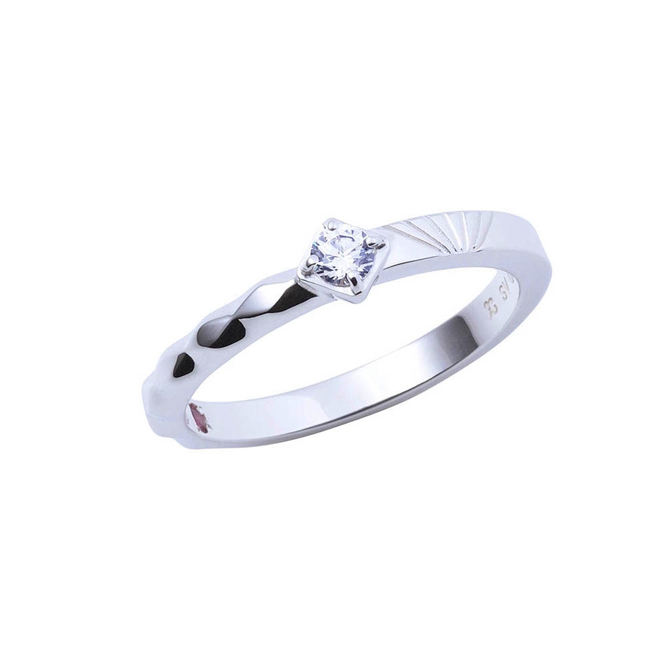ストレートフォルムのリングにキラキラと輝くカット風の加工を施し、