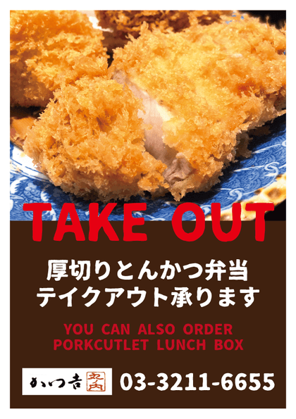 お弁当やとんかつ単品のテイクアウトも承ります。お気軽にお申し付けください。