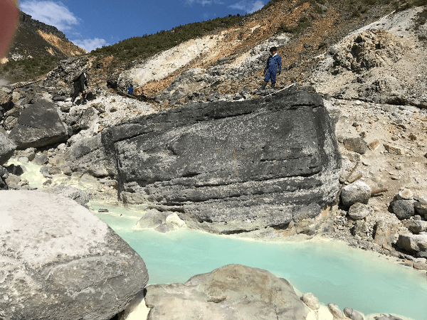 自然が作りだす周辺の景観は独特な雰囲気で、谷にできた広大な湯畑は圧巻。