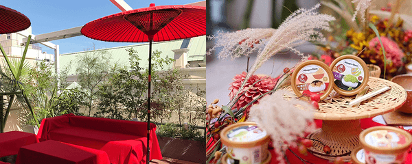 新商品「華もち」の試食ブースに加え、「茶屋」をイメージしたフォトブースをご用意。さらにブースでは、商品のコンセプトに合わせ、和装の貸し出しを行いました。和の世界観に和装が映え、多くのインフルエンサーが写真を撮影しました。
