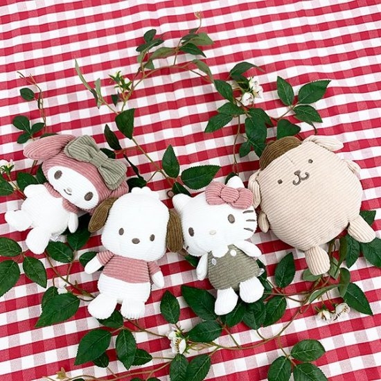 くすみカラーになったことで大人っぽい雰囲気になったポチャッコをご紹介しましたが、実はサンリオの他の人気キャラクター達もコーデュロイで登場しているんです♪マイメロもキティちゃんもポムポムプリンも、みんな柔らかな色合いでほっこり♡ぬいぐるみだけでなくポーチもあるので