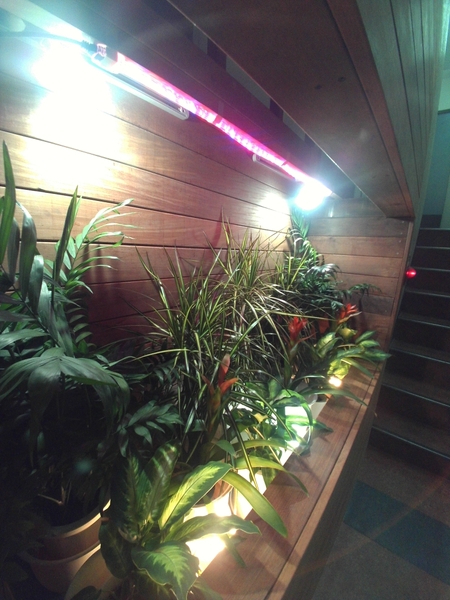 背丈大の観葉植物が数鉢置かれるだけでも雰囲気は変わりますが、今回は管理上開ける予定だった開口部に大工さんに頼んで、キャビネットを製作してもらい、グリーンを配置しました。エントランスにアイキャッチができ、来館者の目が集中するようになります。