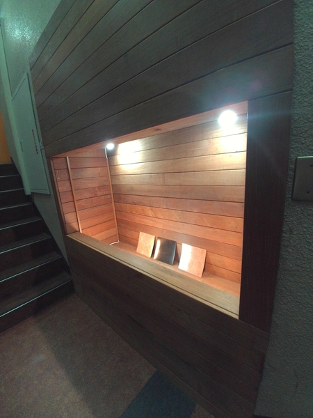 照明を仕込む、開口しガラスブロックとする、など、様々なデザイン案が出ましたが、いずれ飽きてしまうようなデザインでは、大金をかける意味がなく、決め手にかけました。