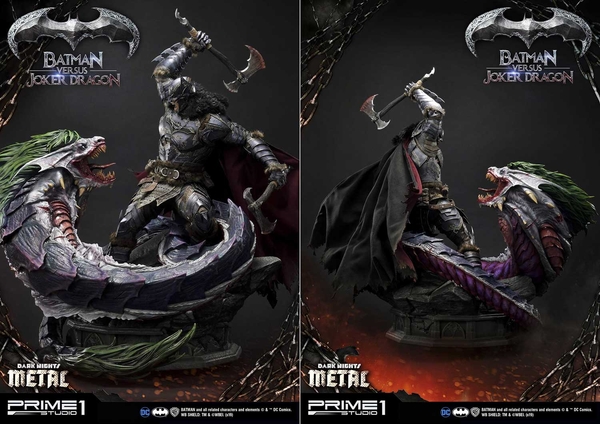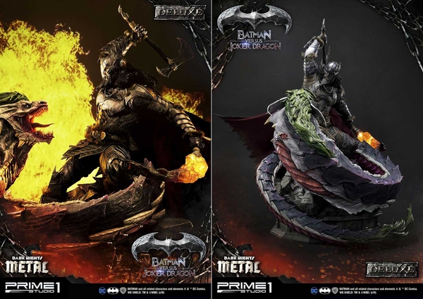 豪華付属パーツが同梱されるDX版も!DCコミックスの人気シリーズ『ダークナイツ:メタル』より、バットマンとジョーカーを思わせる異形のドラゴンの戦いを商品化。